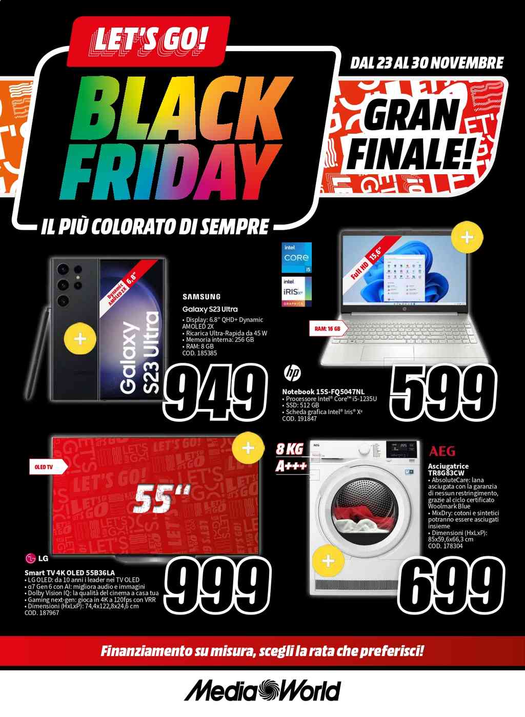 Volantino Mediaworld Black Friday dal 23 novembre 2023