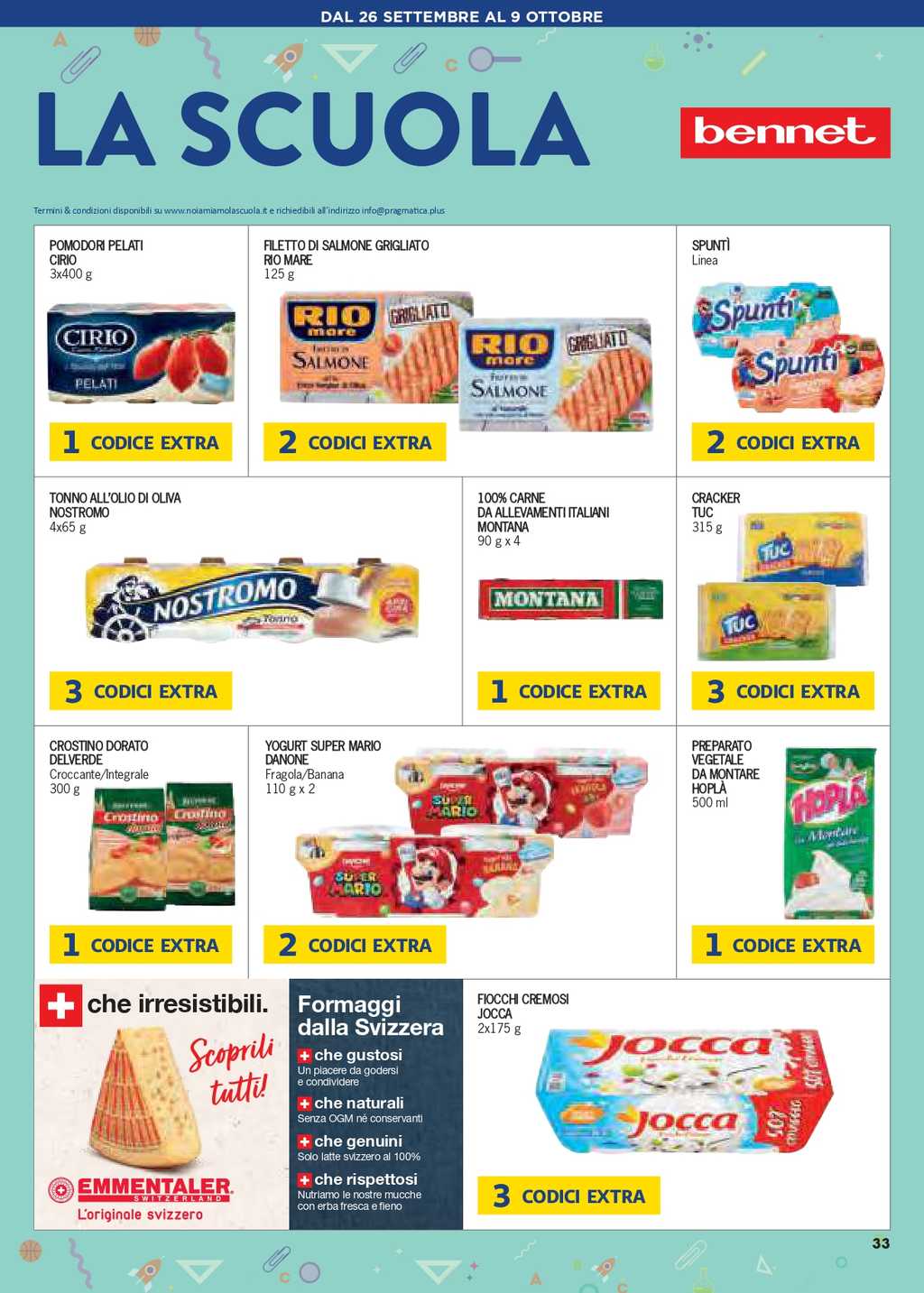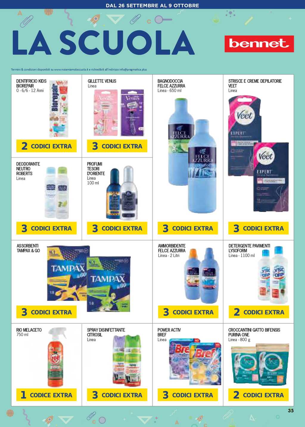 L’iniziativa è supportata da Bennet, che offrirà ai propri clienti una selezione di prodotti sponsor specifici, utili per le scuole e scelti per garantire qualità e funzionalità. I prodotti saranno comunicati nei punti vendita e per iniziare ecco quelli indicati nel prossimo volantino Bennet dal 26 settembre al 9 ottobre 2024: