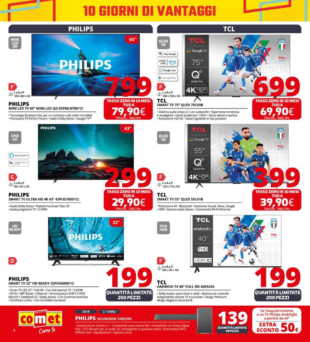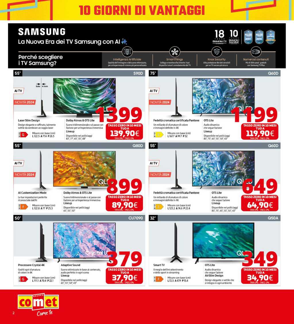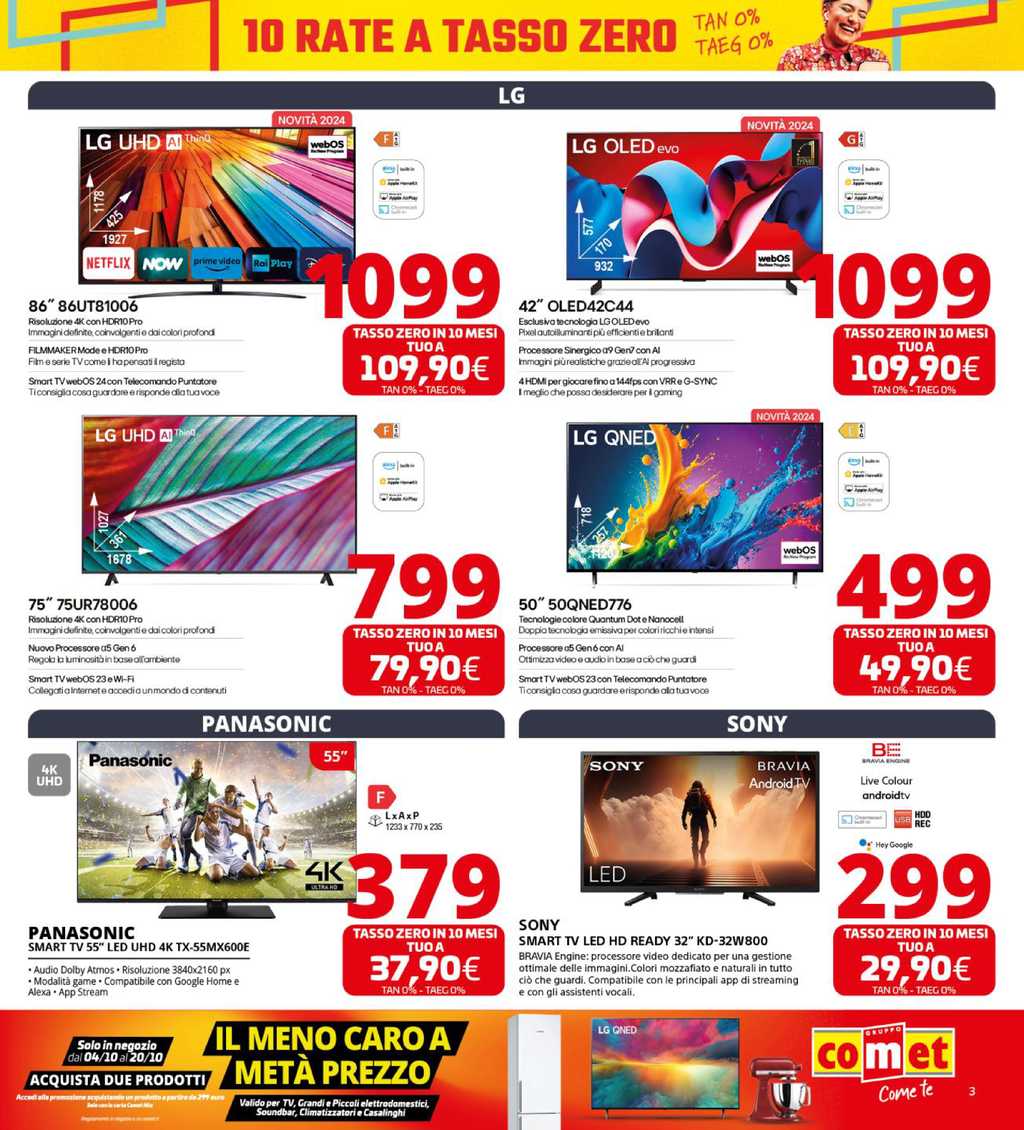 Dal 10 al 20 ottobre 2024, Comet lancia un volantino che promette dieci giorni di vantaggi, grazie a una serie di offerte a tasso zero per i migliori prodotti tecnologici e domestici. L’occasione è pensata per chi desidera rinnovare i propri dispositivi senza compromettere il budget familiare, approfittando di rate mensili senza interessi.