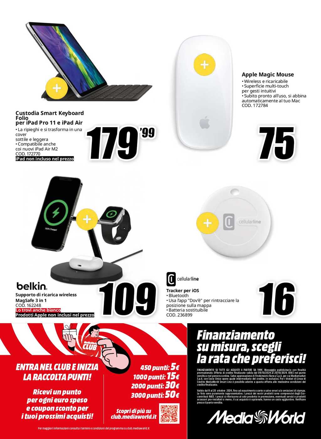 Con il volantino Mediaworld dal 9 al 20 ottobre 2024 abbiamo in offerta una selezione di accessori tecnologici di ultima generazione. Se quindi siete alla ricerca di strumenti per migliorare la vostra esperienza digitale o semplicemente desiderate aggiornare i vostri dispositivi, questa è l’occasione giusta per scoprire un mondo di offerte pensate per ogni esigenza.