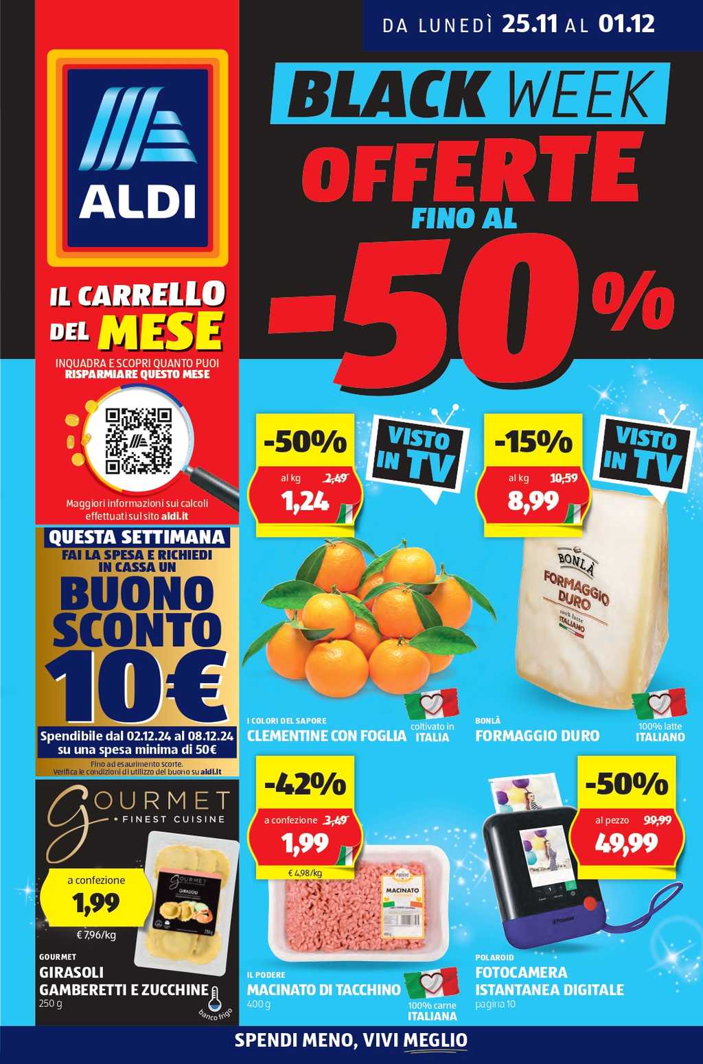 Le promozioni del volantino ALDI per la settimana dal 25 novembre al 1 dicembre 2024 sono una vera occasione per chi vuole risparmiare su una vasta gamma di prodotti. Questo periodo, arricchito dalla campagna “Black Week”, offre sconti fino al 50% su una molti articoli, dagli alimentari agli elettrodomestici, passando per l’abbigliamento natalizio. In questo articolo esploreremo insieme il volantino, pagina per pagina, per aiutarti a scoprire tutte le migliori offerte disponibili e non perdere l’occasione di fare acquisti convenienti.