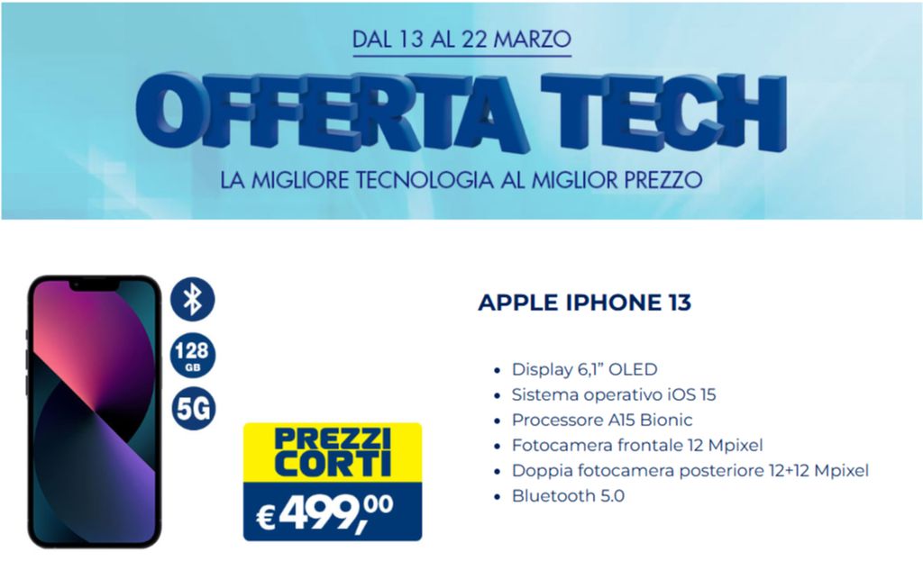 Per gli amanti della fotografia, l’iPhone 13 include una doppia fotocamera posteriore da 12+12 Mpixel, perfetta per scatti definiti e video di qualità cinematografica. Inoltre, la fotocamera frontale da 12 Mpixel è l’ideale per selfie e videochiamate cristalline. Completano il display OLED da 6,1 pollici, la connettività Bluetooth 5.0 e il supporto alla velocissima rete 5G, che garantisce una navigazione rapida e sempre connessa. Il tutto è offerto al prezzo competitivo di 499 euro, rendendo questa promozione una delle più convenienti disponibili sul mercato.
