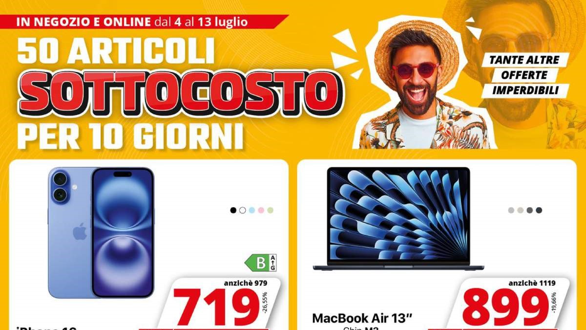Sfoglia il volantino Comet dal 4 luglio 2025, un’occasione imperdibile per approfittare di 50 prodotti sottocosto validi per 10 giorni, sia nei punti vendita fisici che online. Le offerte sono valide fino al 13 luglio, con pezzi limitati e sconti reali su articoli di alta gamma, tra cui smartphone, notebook, TV OLED, elettrodomestici, console e accessori gaming. Chi cerca tecnologia di ultima generazione a prezzi imbattibili troverà in questo volantino Comet un’ottima occasione per risparmiare. E al termine delle offerte, ricordati di consultare anche il volantino Euronics dal 4 luglio 2025 per confrontare le promozioni più vantaggiose.