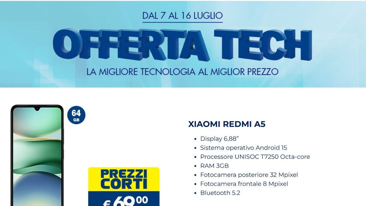 Esselunga Offerta Tech dal 7 luglio 2025: smartphone, tecnologia e prezzi bassi per tutti. Xiaomi Redmi A5!
